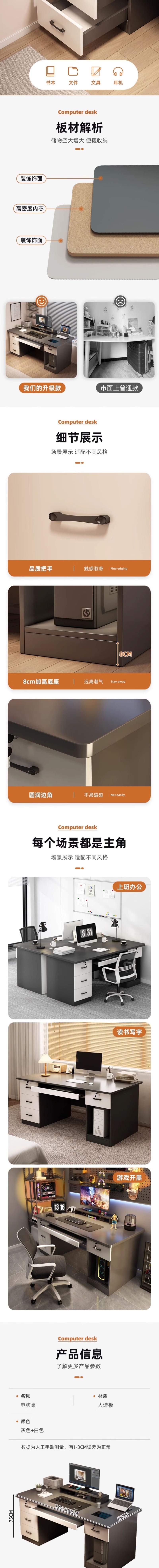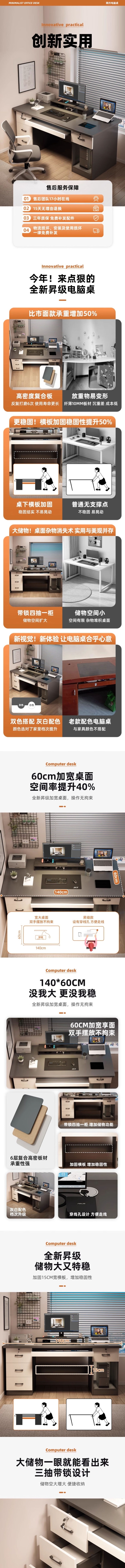 荣将简约现代办公桌电脑桌台式家用电竞桌椅书桌写字桌五抽1.4米桌+椅