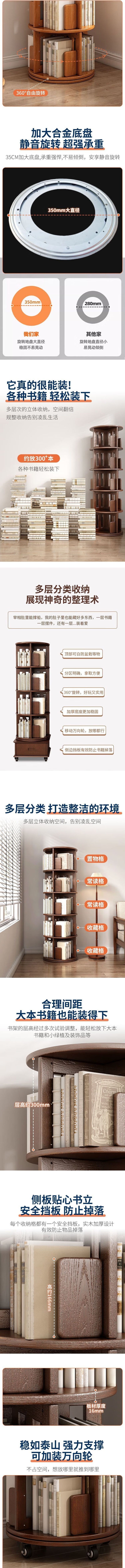 荣将旋转书架落地实木书柜360度可旋转层架落地书架置物架 四层