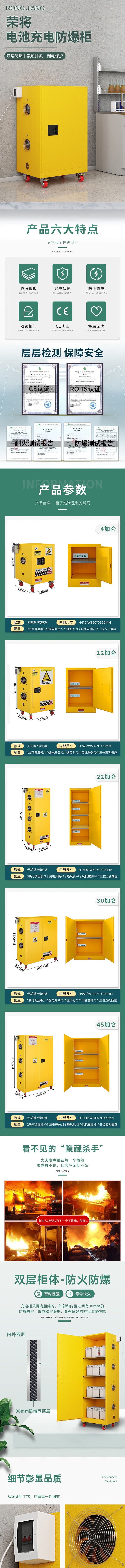荣将防爆柜锂电池充电柜电瓶存放柜防火安全柜 12加仑(带风扇轮子)