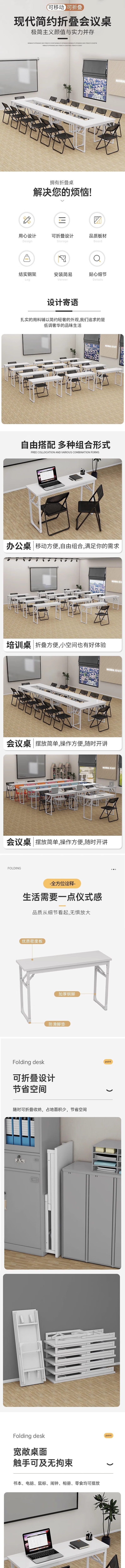 荣将折叠会议桌培训桌椅组合简易长方形办公桌120*50*75cm含两椅
