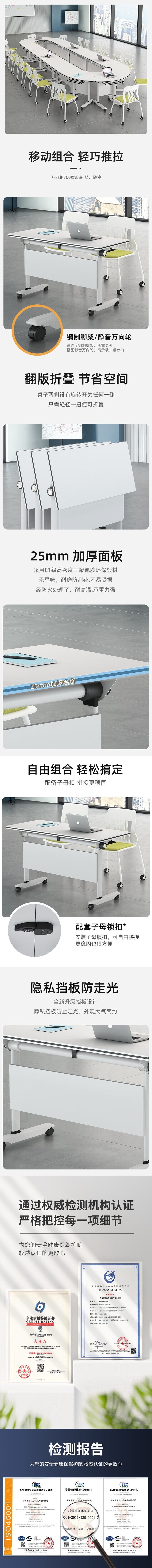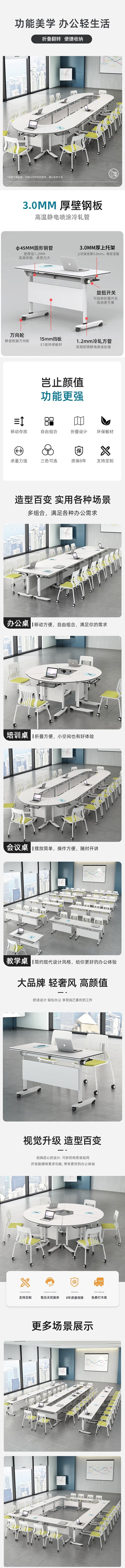 荣将折叠会议桌培训桌椅组合长方形办公桌洽谈桌1.8*0.5米不含椅