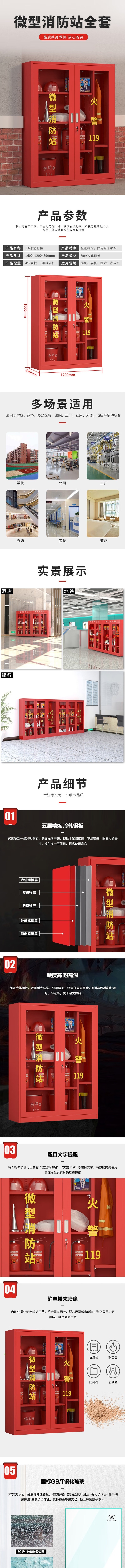 荣将消防柜微型消防站全套消防器材应急柜箱 高1600宽1200mm含2人器材