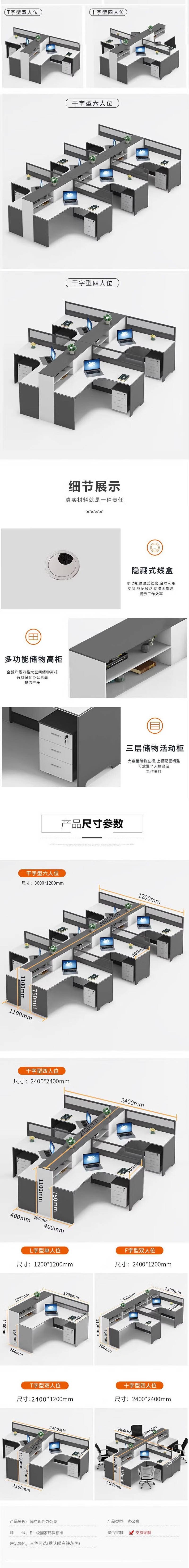 荣将职员办公桌椅组合简约办公桌工作台 屏风工位F型三人位含柜椅