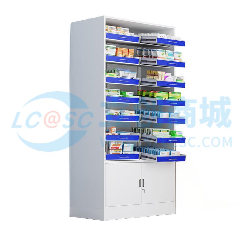荣将西药柜门诊药房药架药盘架医院药店药品分类架 二联抽带门药盘柜