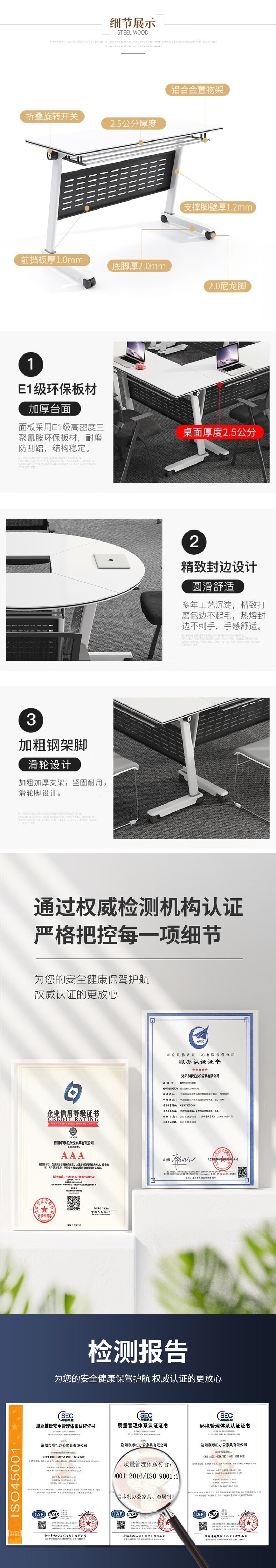 荣将折叠会议桌培训桌椅组合长方形学习桌移动办公桌120*60*75cm