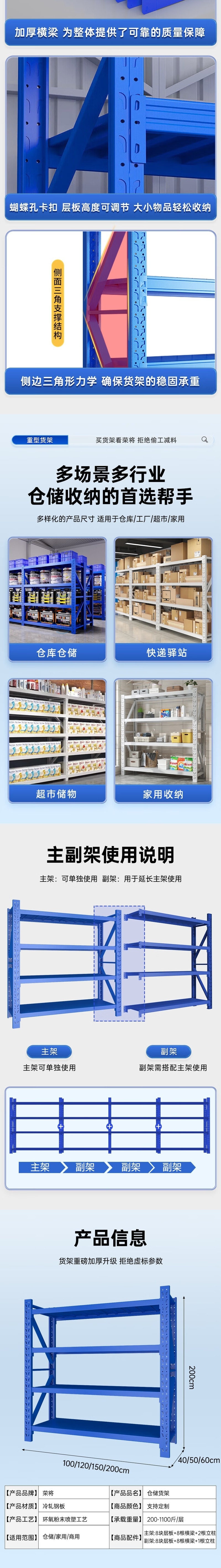 荣将重型货架置物架多层仓储货架仓库库房超强承重货架置物储物铁架子