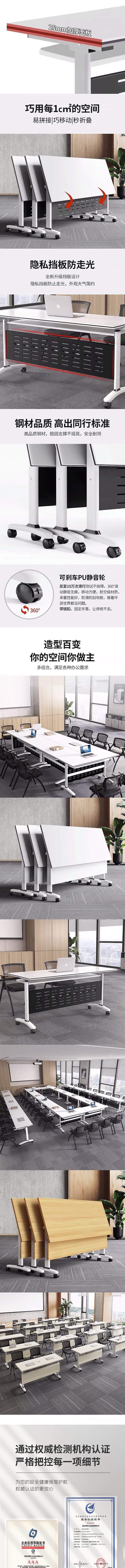荣将折叠会议桌培训桌椅组合三人课桌带轮可移动办公桌1.8*0.6米含3椅