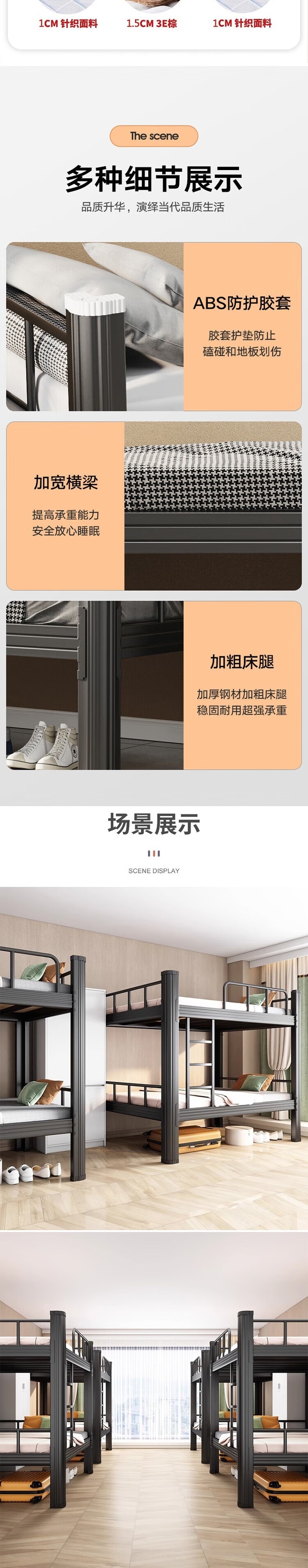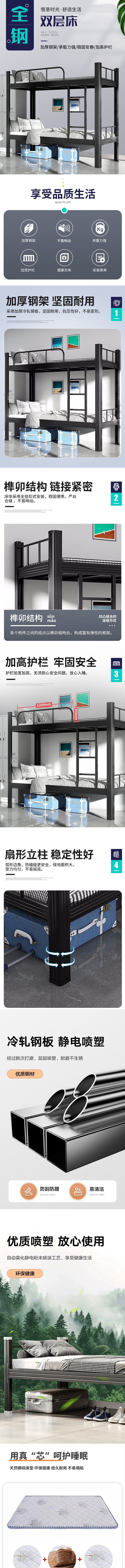 荣将上下床双人床上下铺铁床员工宿舍公寓高低床双层铁架床带床板0.9m