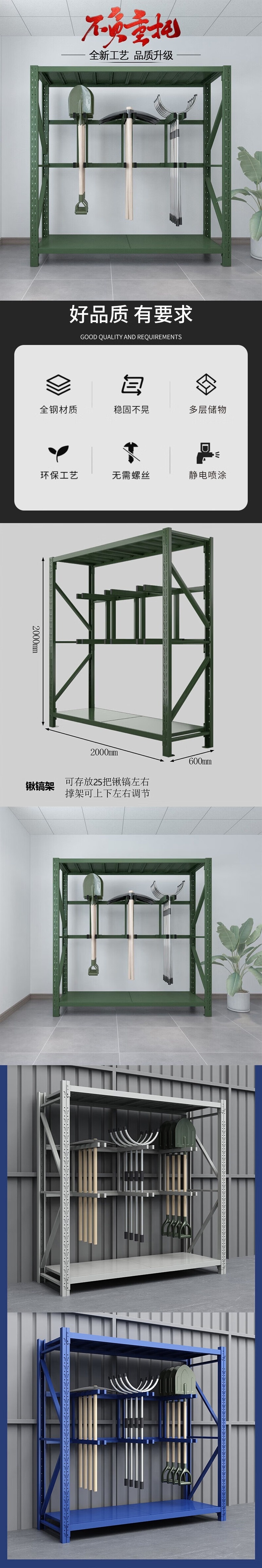 荣将 工具架锹镐架铁锹铁铲装备存放展示货架 绿色四层200KG/层
