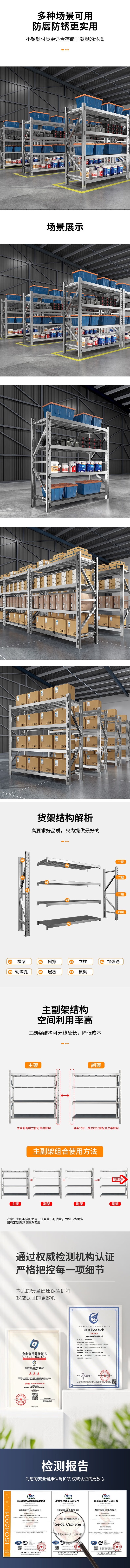 荣将201不锈钢货架置物架仓储仓库工厂重型置物货架120*60*200cm