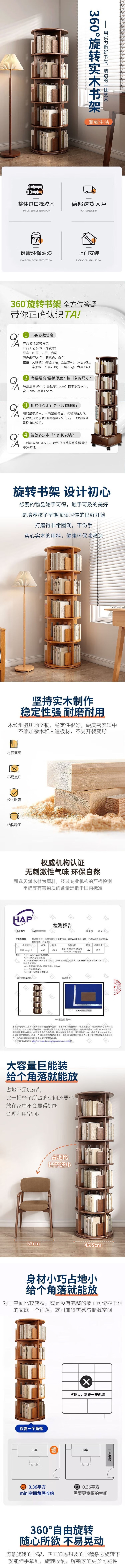 荣将旋转书架落地实木书柜360度可旋转层架落地书架置物架 四层