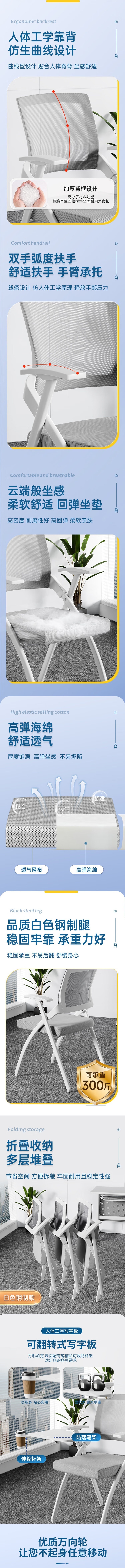 荣将培训椅会议椅可折叠收纳椅子电脑椅记者办公椅 灰色