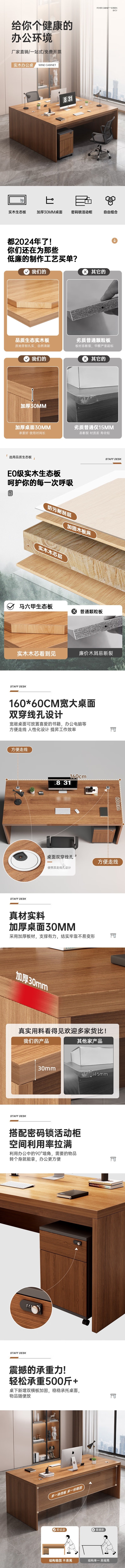 荣将实木办公桌电脑桌办公室工位职员工作台写字桌加厚1.4米桌+密码柜