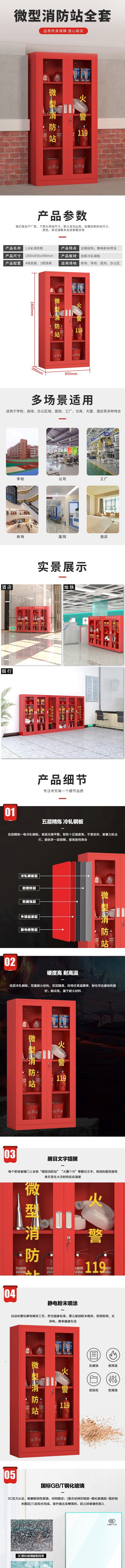 荣将消防柜微型消防站全套消防器材应急柜箱 高1800宽850mm含2人器材
