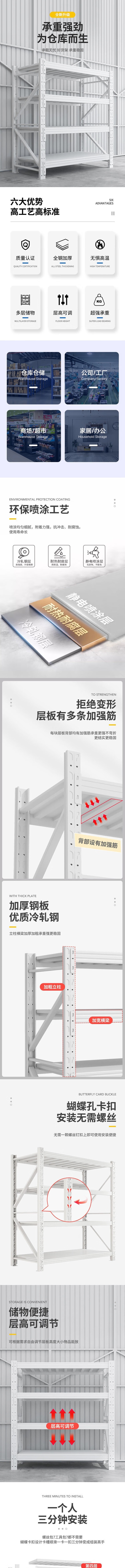 荣将货架仓储仓库家用置物架中型库房展示架铁架子四层货架180*60*200