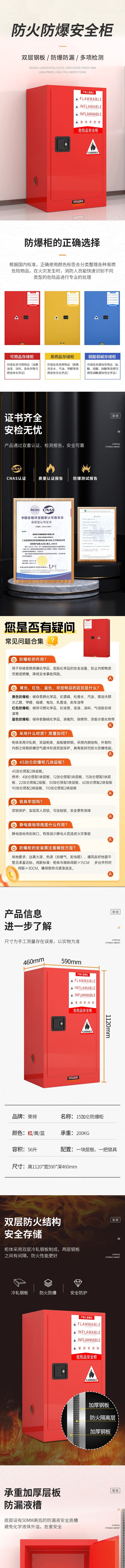 荣将安全防爆柜工业防火柜危险化学品存放柜15加仑红色