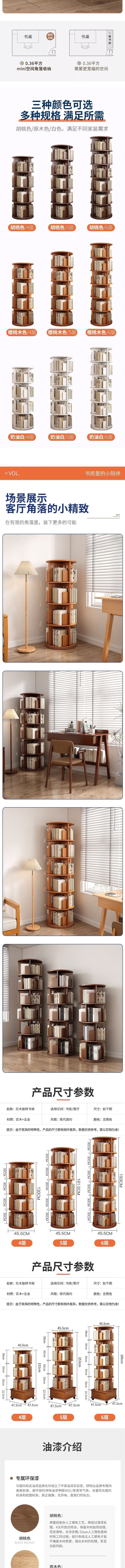 荣将旋转书架落地实木书柜360度可旋转层架落地书架置物架 五层
