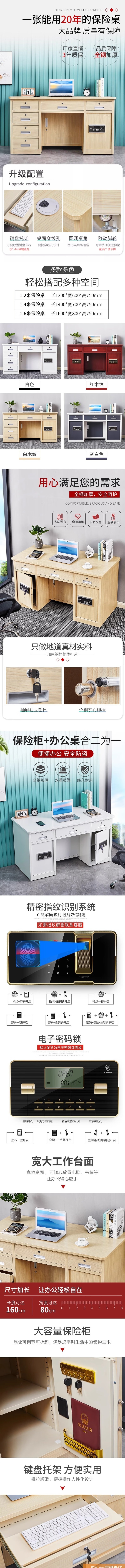 荣将1.6米钢制保险桌办公桌铁皮桌子电脑桌职员桌财务桌写字台六斗