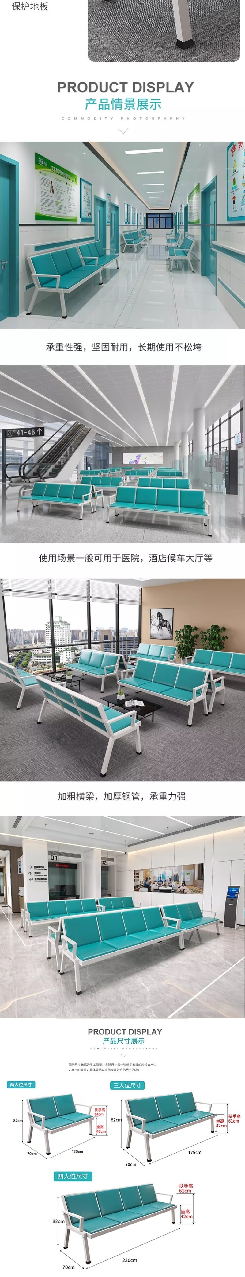 荣将联排椅医院候诊椅机场候车椅银行等候椅公共座椅铁艺皮沙发双人位