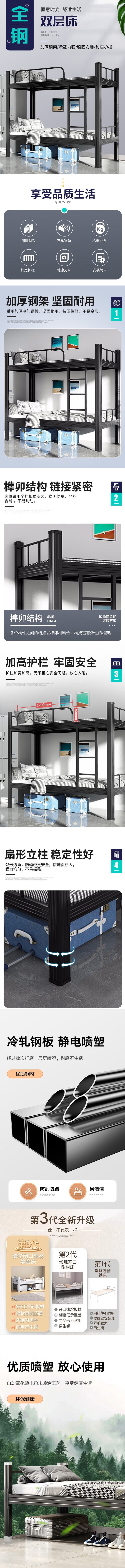 荣将上下床双人床上下铺铁床员工宿舍公寓高低床双层铁架床带床板1.5m