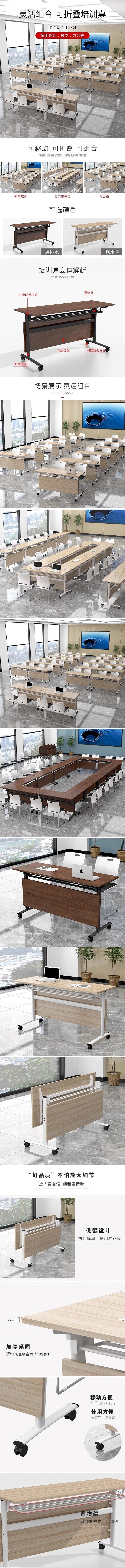 荣将折叠会议桌培训桌椅组合双人课桌带轮可移动办公桌120*40*75cm