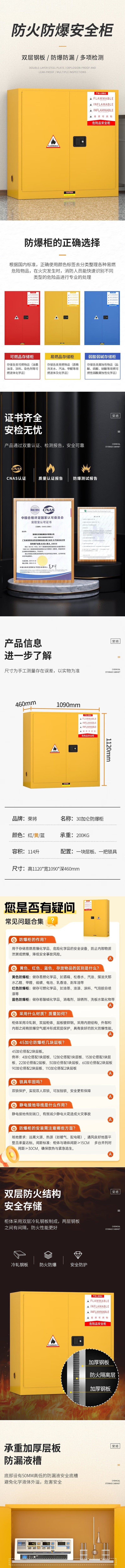 荣将防爆柜化学品安全存放柜危化品储存防火柜 30加仑
