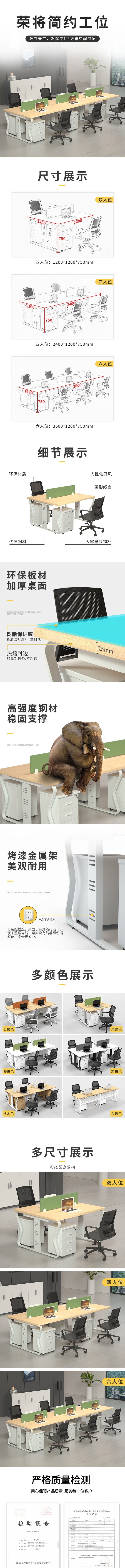 荣将职员办公桌椅组合职员工位电脑桌屏风办公桌六人位对坐含柜不含椅