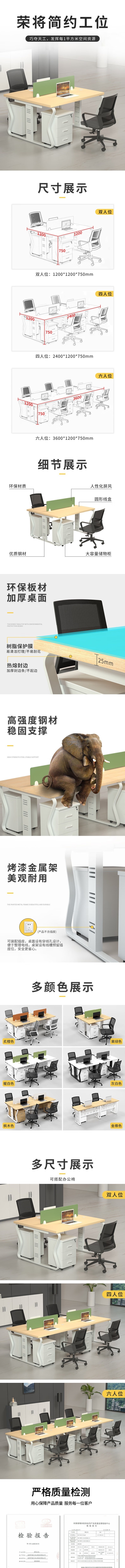 荣将职员办公桌椅组合职员工位电脑桌屏风办公桌双人位对坐含柜椅