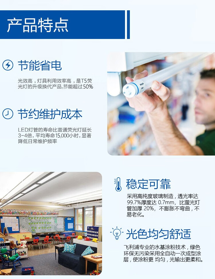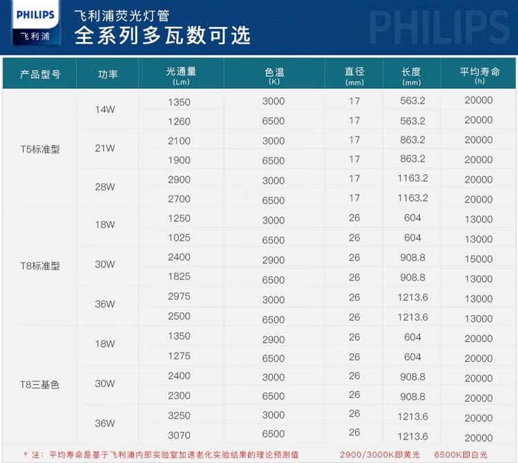 飞利浦 T5-1.16m 日光灯管40支装 28W 日光色