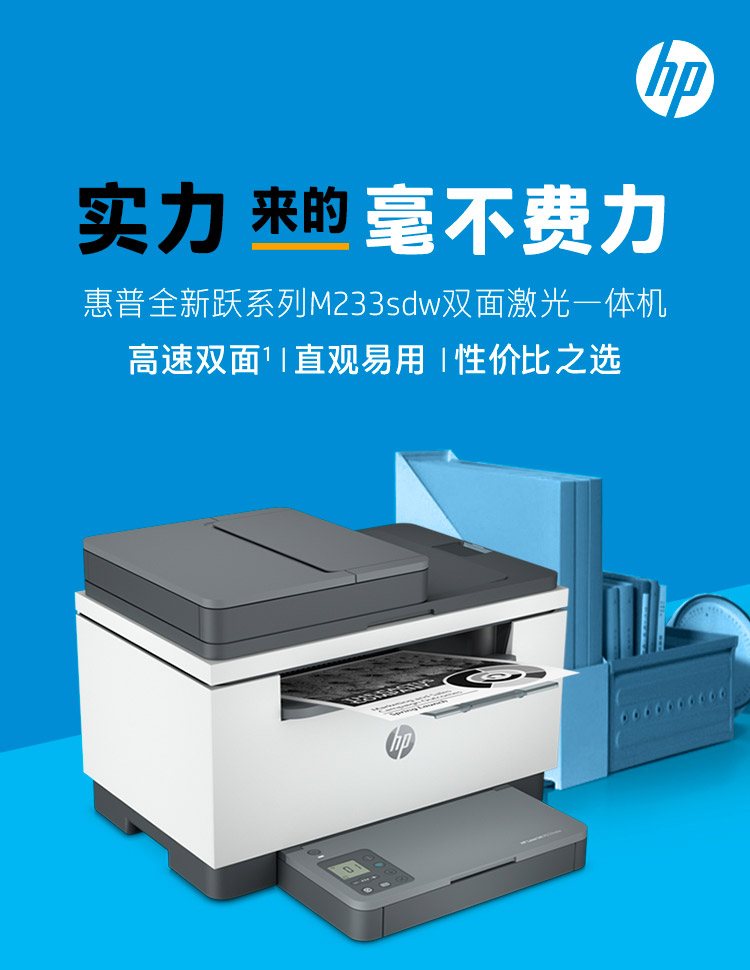 惠普(HP)M233sdw打印机 办公家用黑白多功能激光一体机 连续批量复印扫描(双面打印+无线wifi)企业