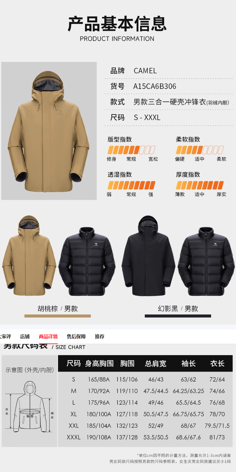 骆驼 昆仑山系列冲锋衣男三合一(800蓬)鹅绒内胆TOPEAK-TEX巅峰3L硬壳外套B306