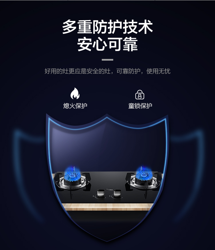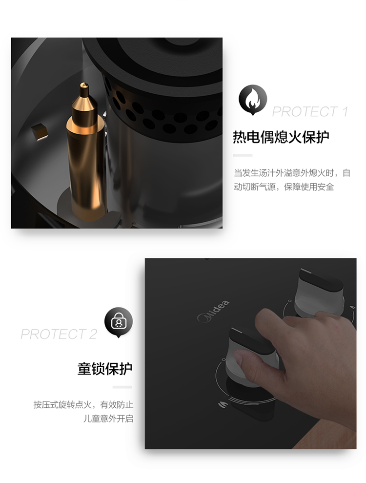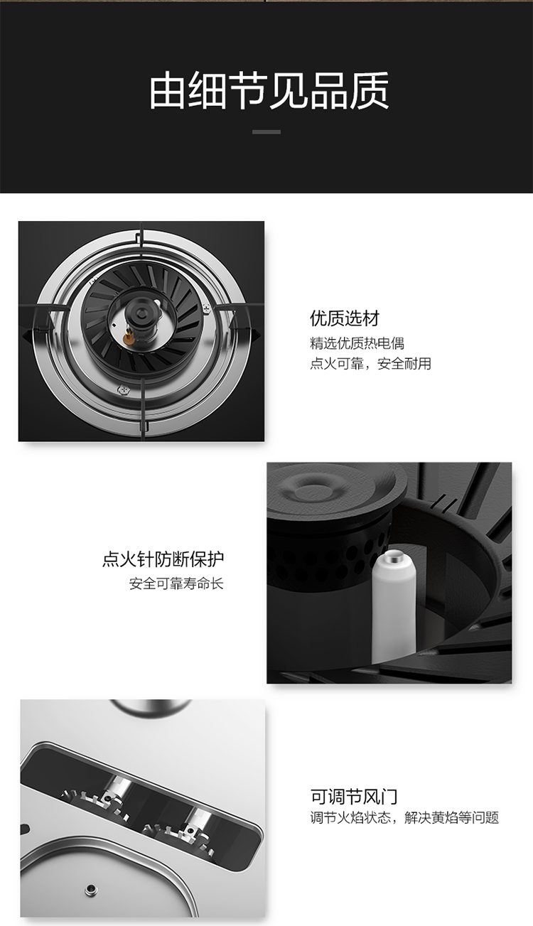 优质材质:黑晶玻璃面板耐高温易清洁;精选优质热电偶,点火可靠耐用