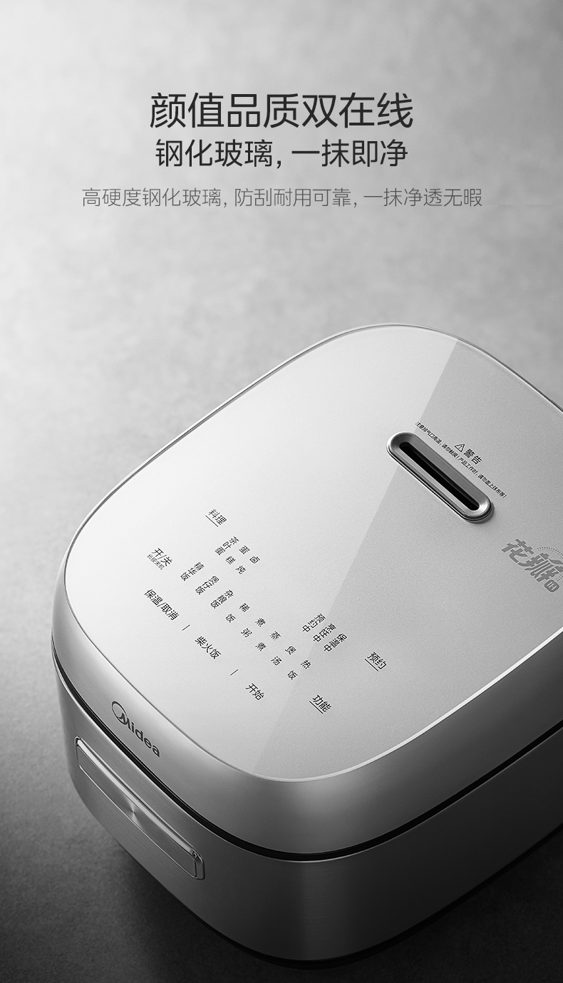 易清洁设计:可拆上盖清水冲洗即净,钢化玻璃面板防刮耐用