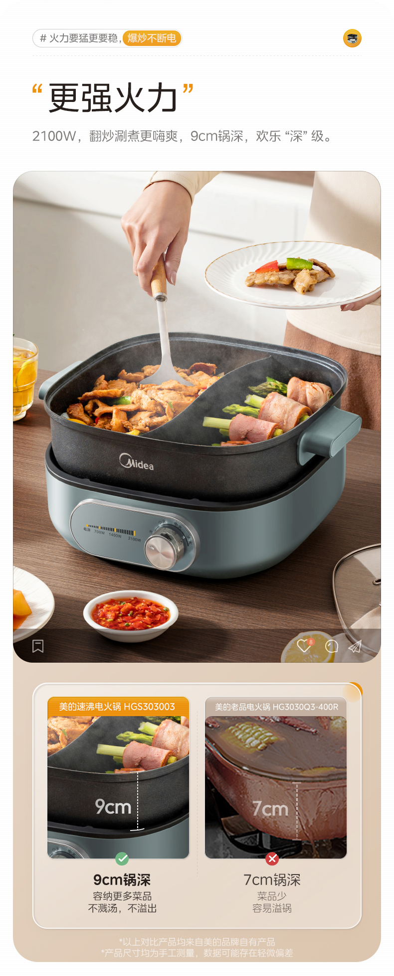三档火力调节(700W/1400W/2100W),精准控温适配煎、炒、炖、煮、焖、焗等多种烹饪方式