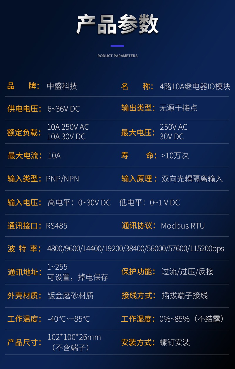 工业级耐用性:外壳为钣金磨砂材质,工作温度范围-40℃~+85℃,湿度0%~85%(不结露),继电器寿命>10万次