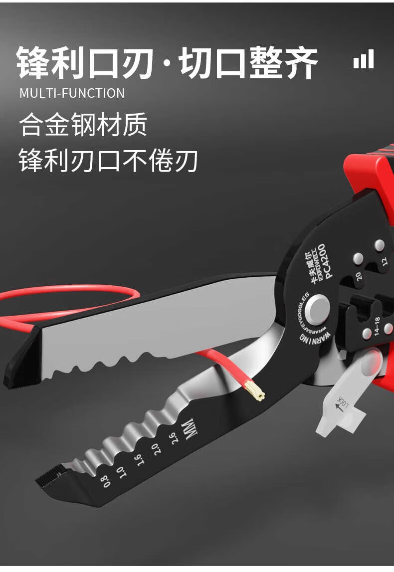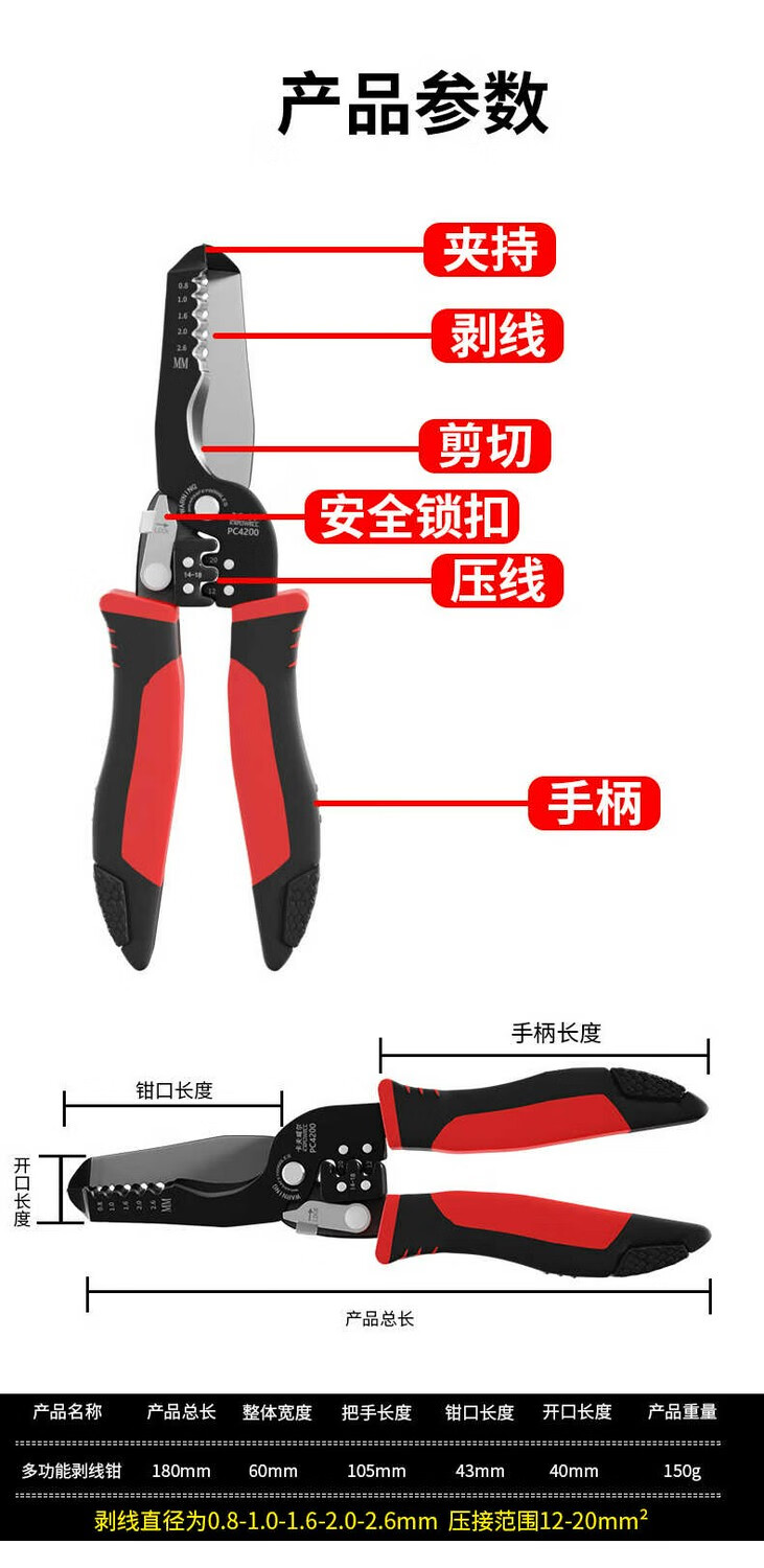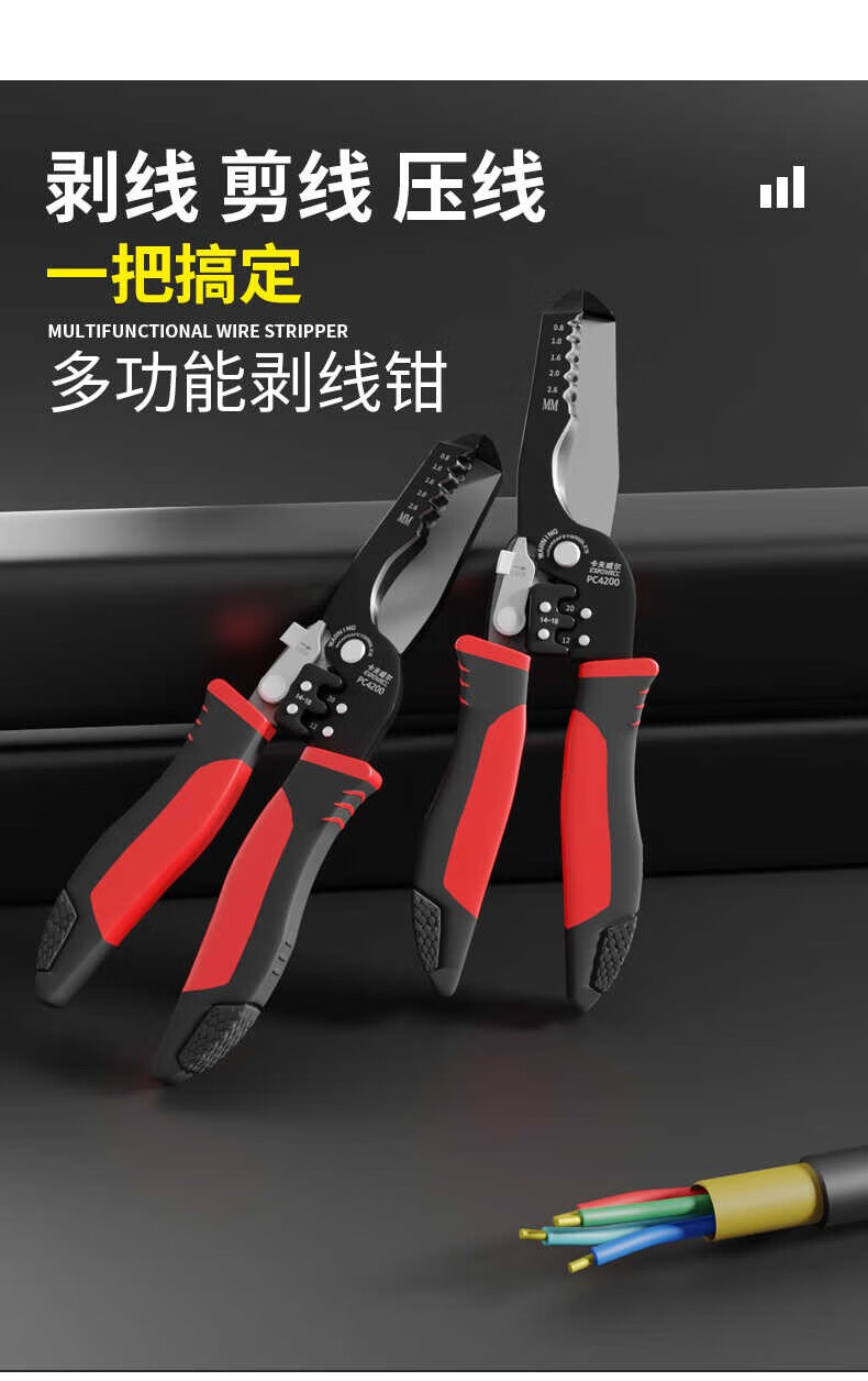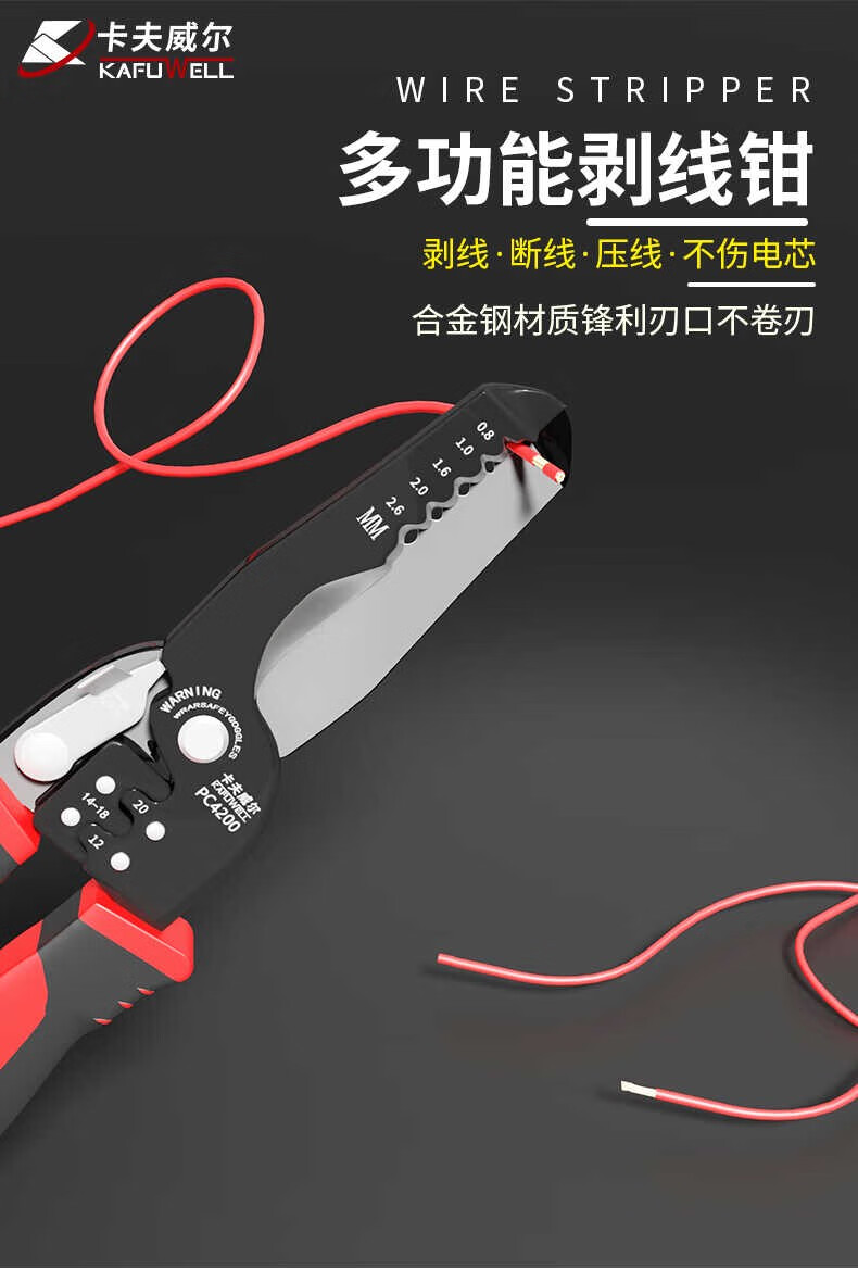 卡夫威尔 多功能剥线钳 带刃口电工钳 电子压线钳 7英寸 PC4200