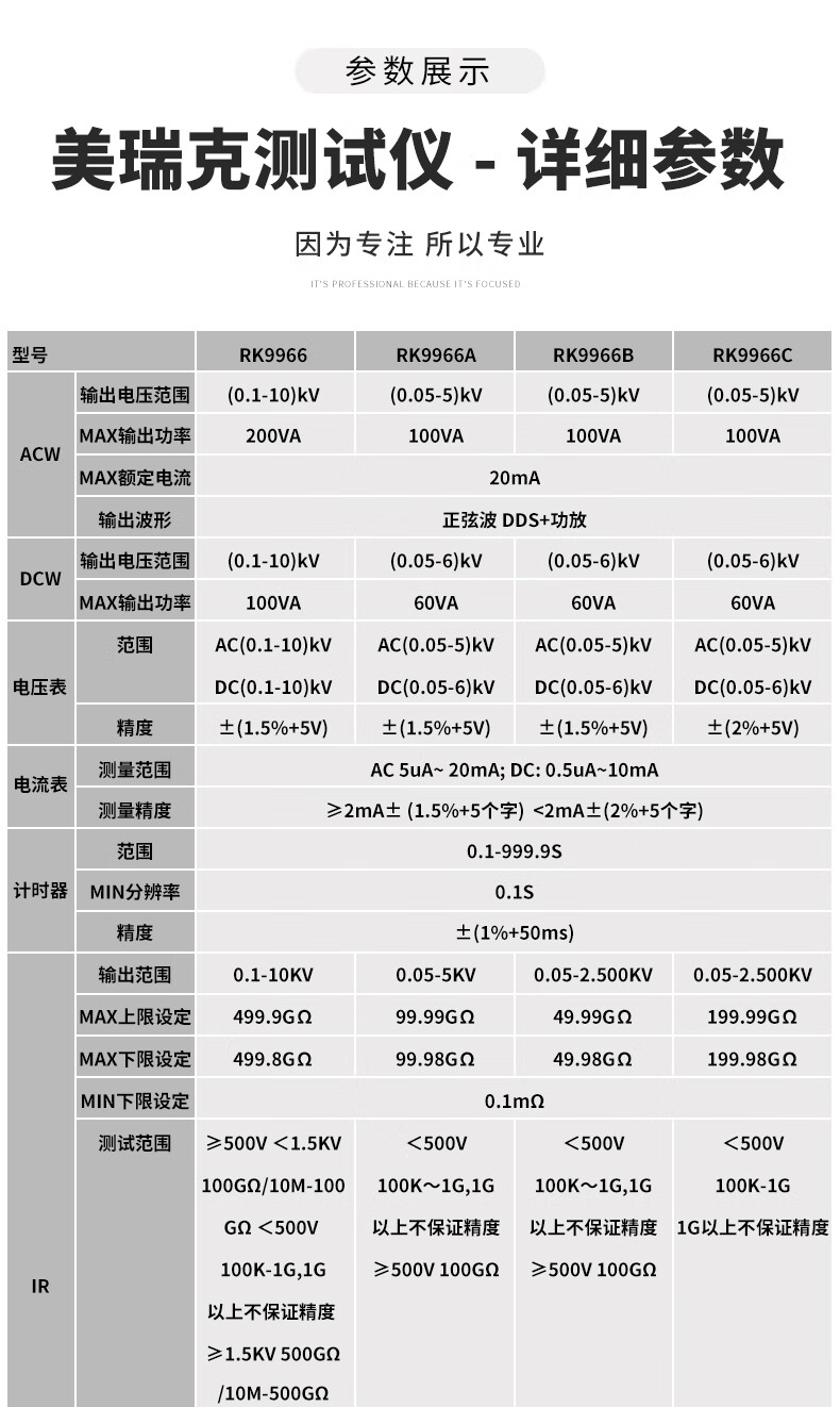 宽范围电压输出:ACW输出电压0.05-5kV,DCW输出电压0.05-6kV,适配不同设备的电压耐受测试