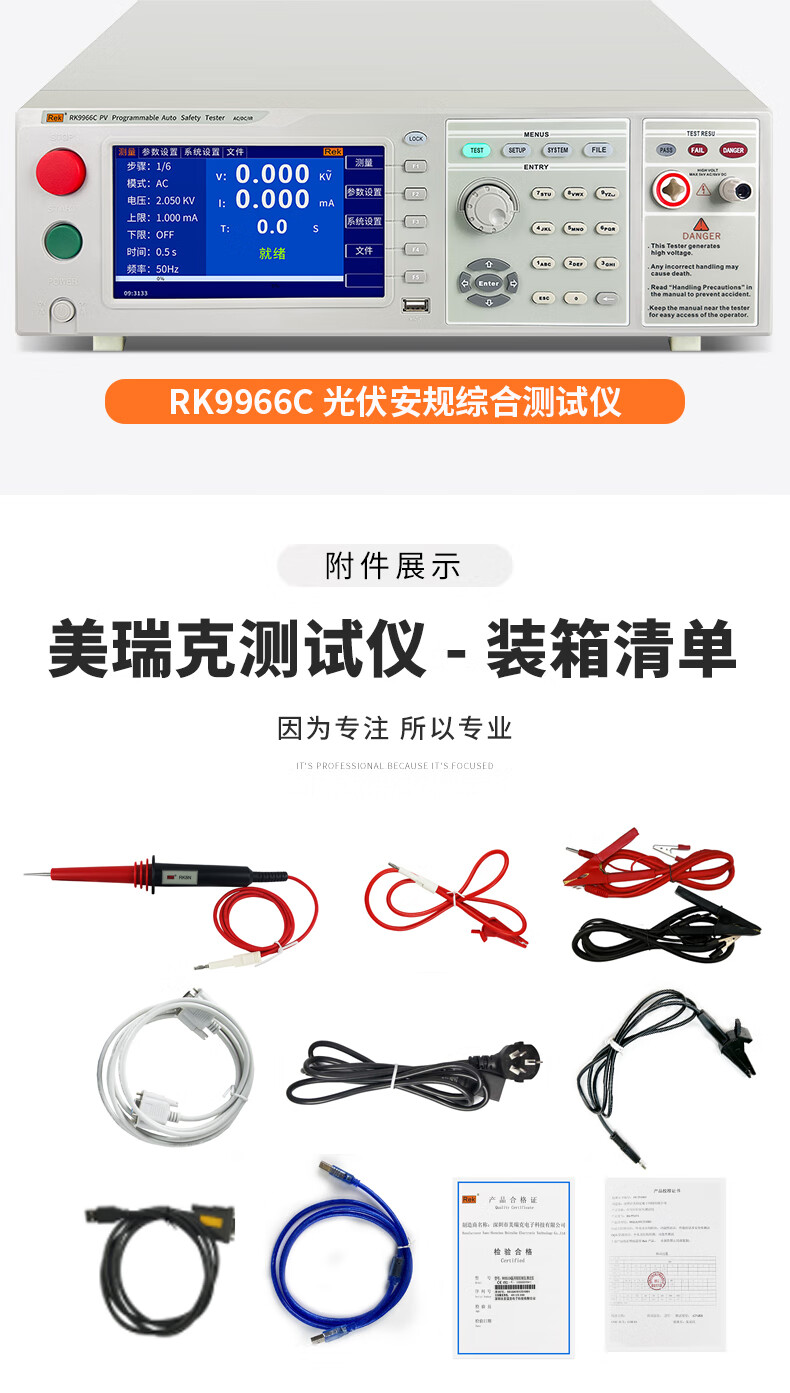 综合安规测试能力:支持AC/DC耐压测试、绝缘电阻测试等多种参数检测,满足多场景安规验证需求