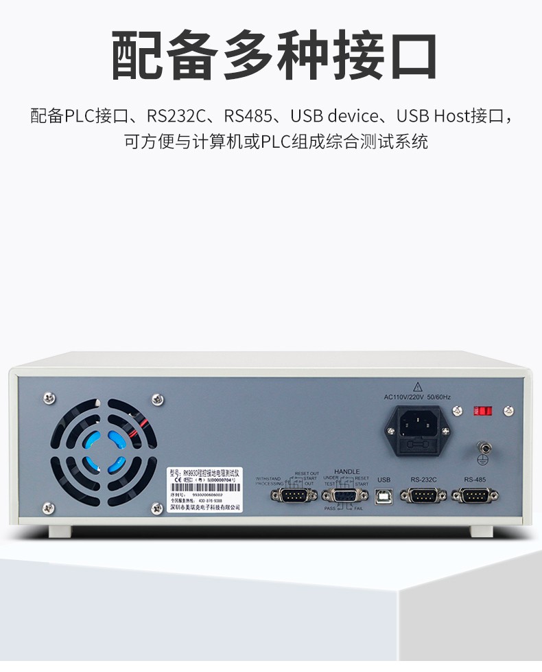 支持大容量数据存储,配备RS232C、RS485、USB、PLC接口,可与计算机或PLC组成综合测试系统