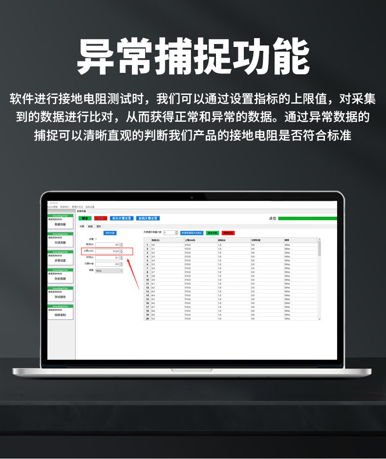 有声光报警功能,测试结果合格/不合格直观提示,支持测试时间设置(0-999.9S)