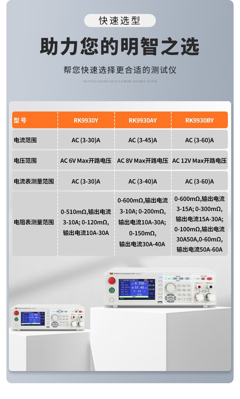 测试电流范围AC(3-30)A,电阻测量范围覆盖0-510mΩ(输出3-10A)和0-120mΩ(输出10-30A)