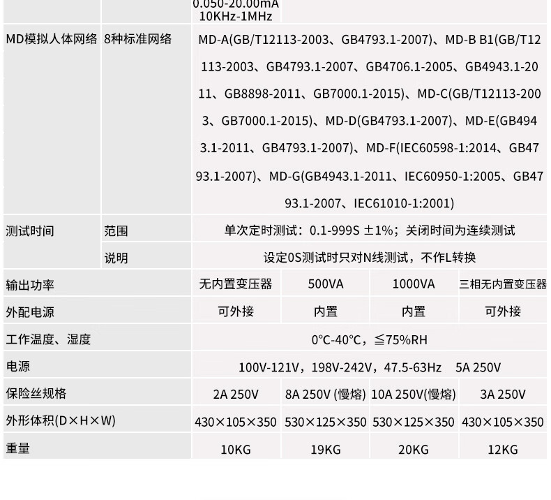 支持8种标准MD模拟人体网络(如MD-A、MD-B1等),符合多项国家标准与国际标准