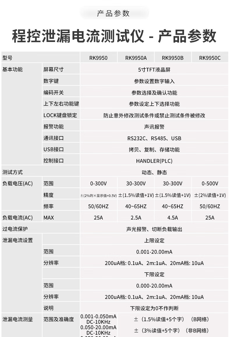 美瑞克三相程控泄漏电流测试仪RK9950C