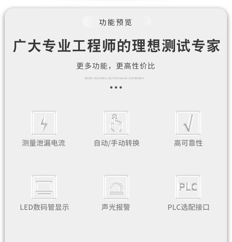 具备声光报警功能,泄漏电流超限时自动触发,提升安全预警性