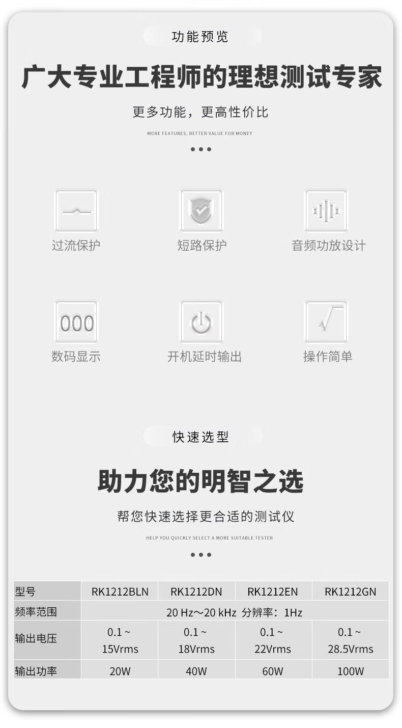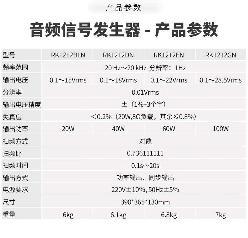 频率范围覆盖20Hz~20kHz,频率分辨率达1Hz,输出信号精准稳定