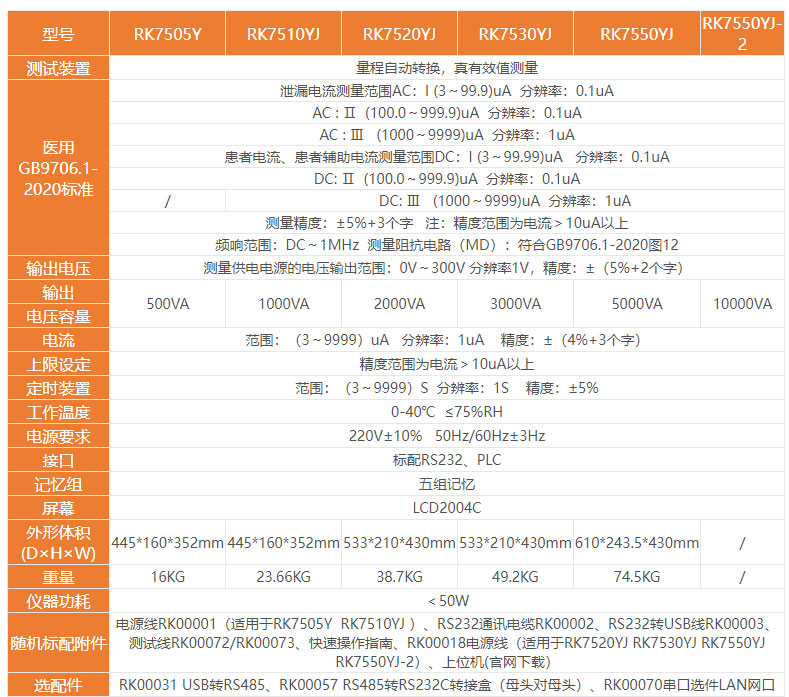 美瑞克程控医用泄漏电流测试仪RK7520YJ
