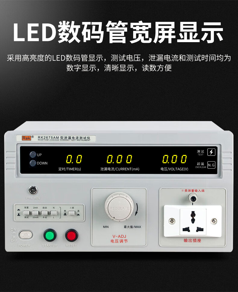 属于美瑞克RK2675系列泄漏电流测试仪,型号RK2675B,专为低压用电设备泄漏电流检测设计
