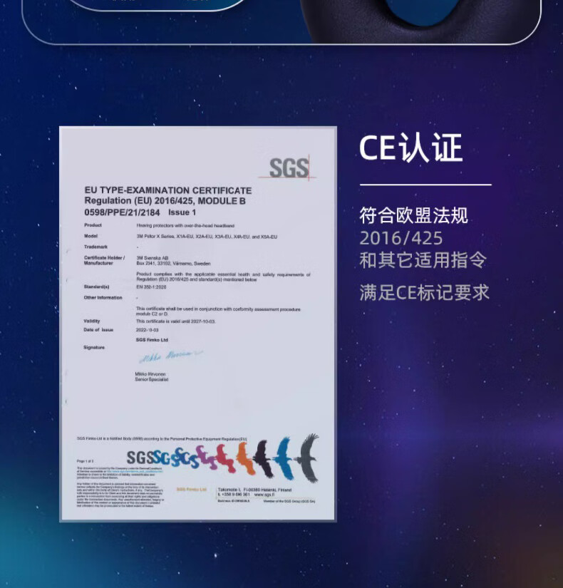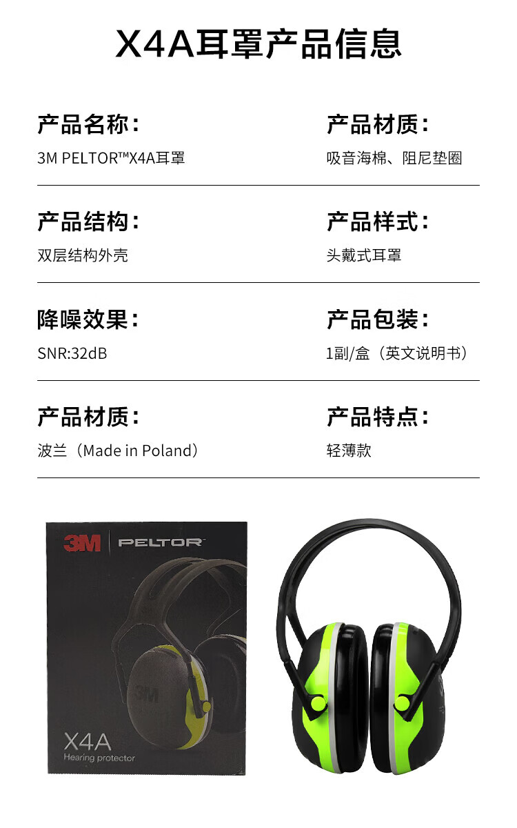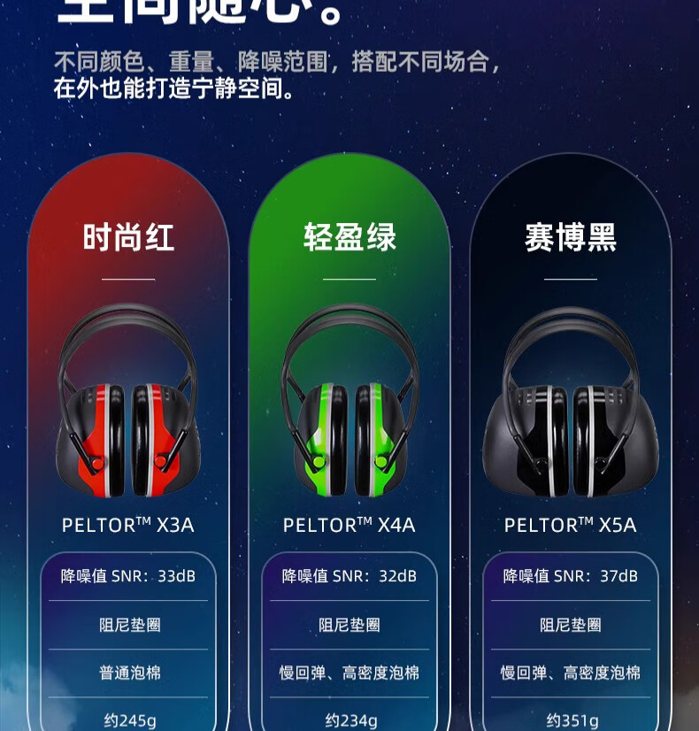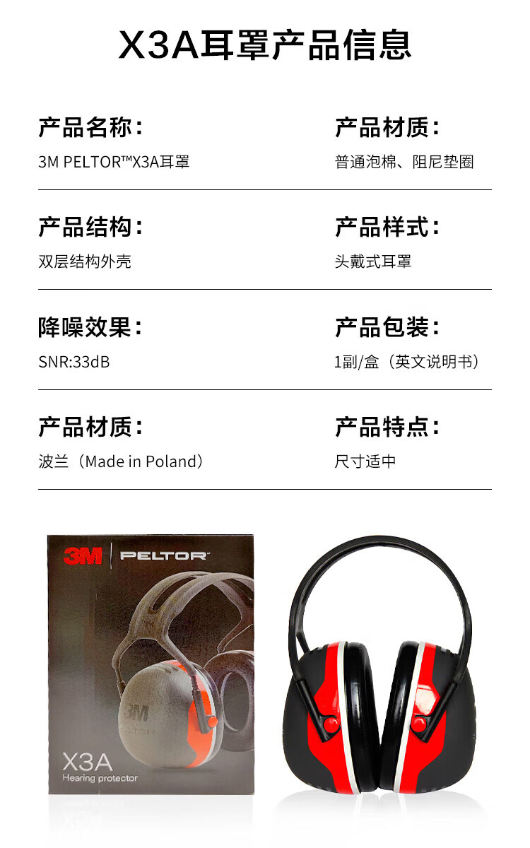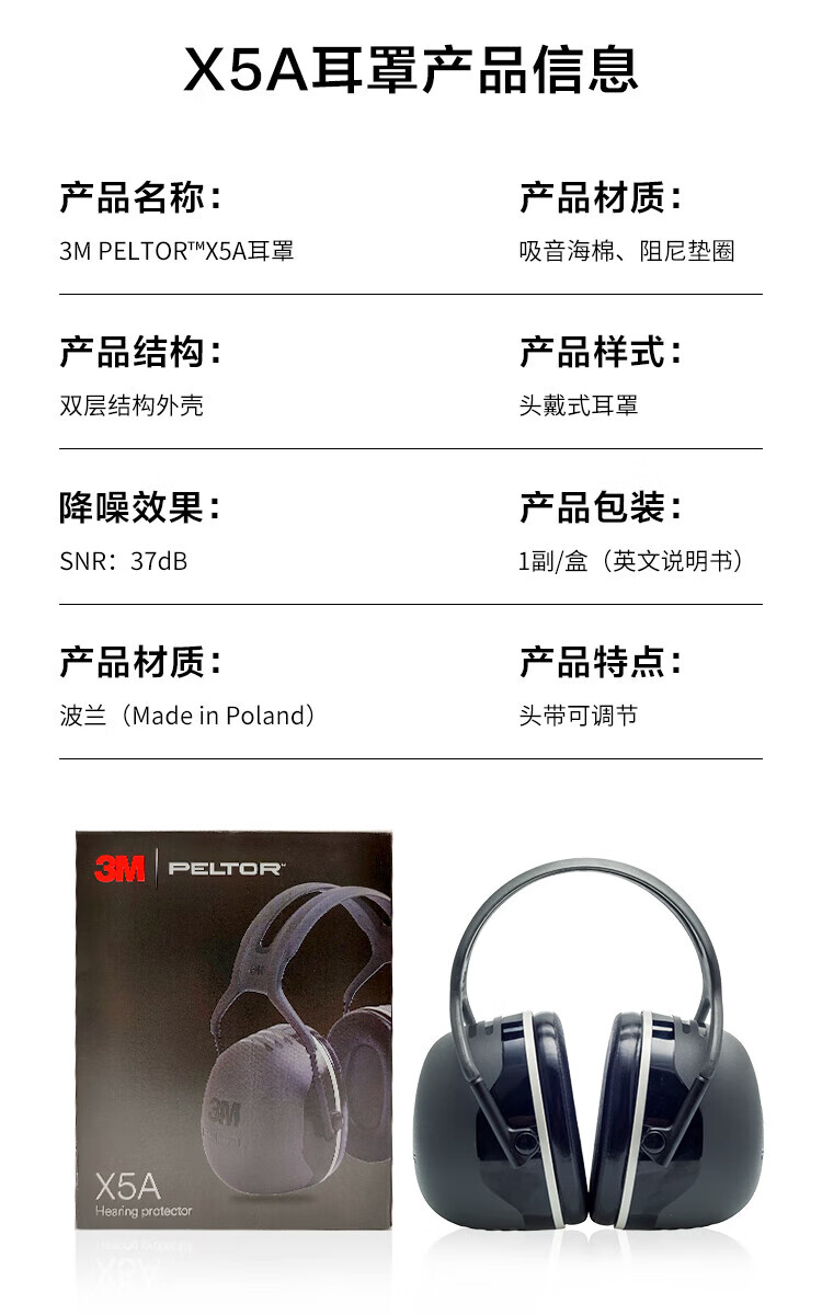 3M 耳罩 X5A 隔音耳罩,睡眠用,专业防噪音,头戴式