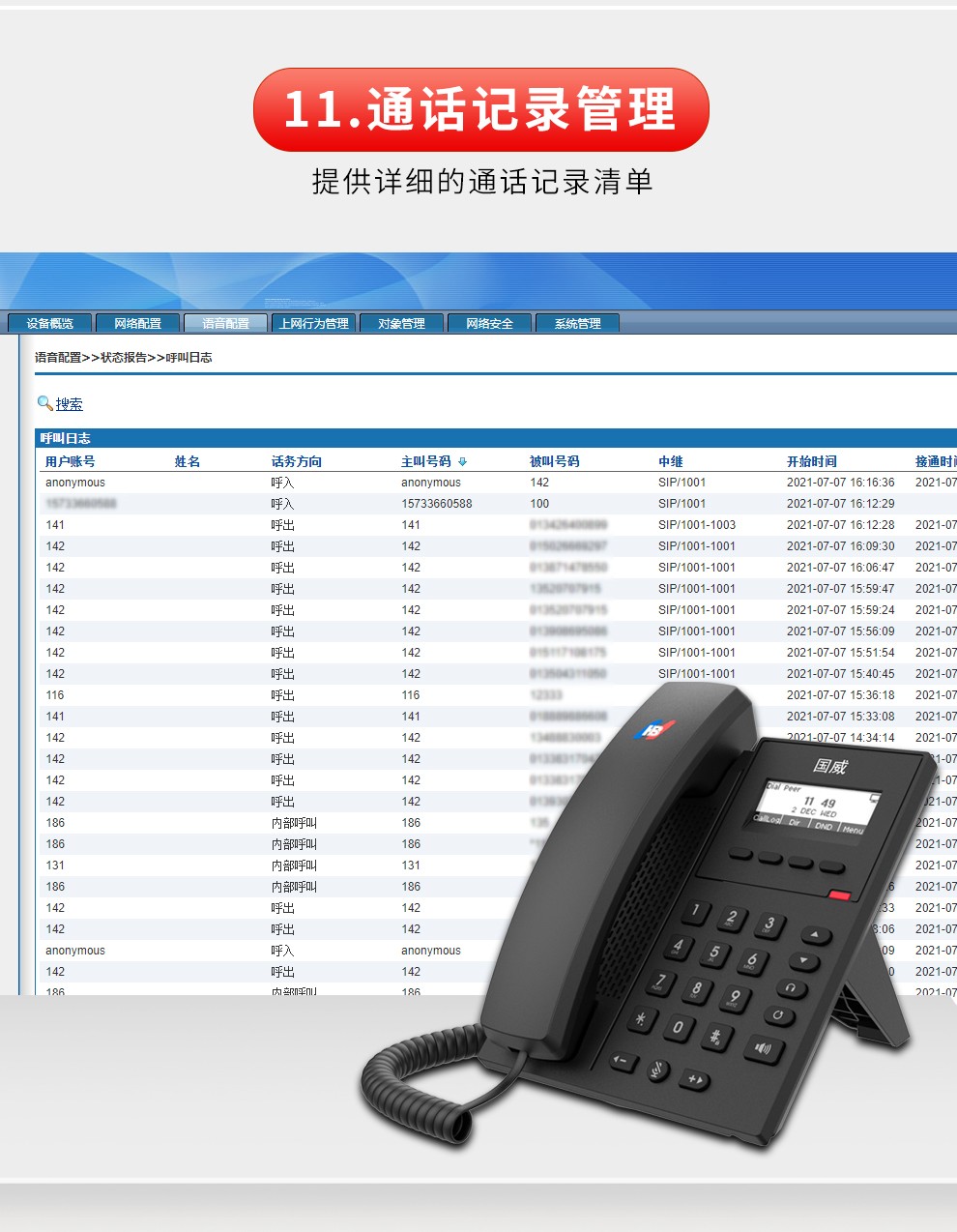国威 GW61V 电话机座机 安卓7英寸彩屏 黑色