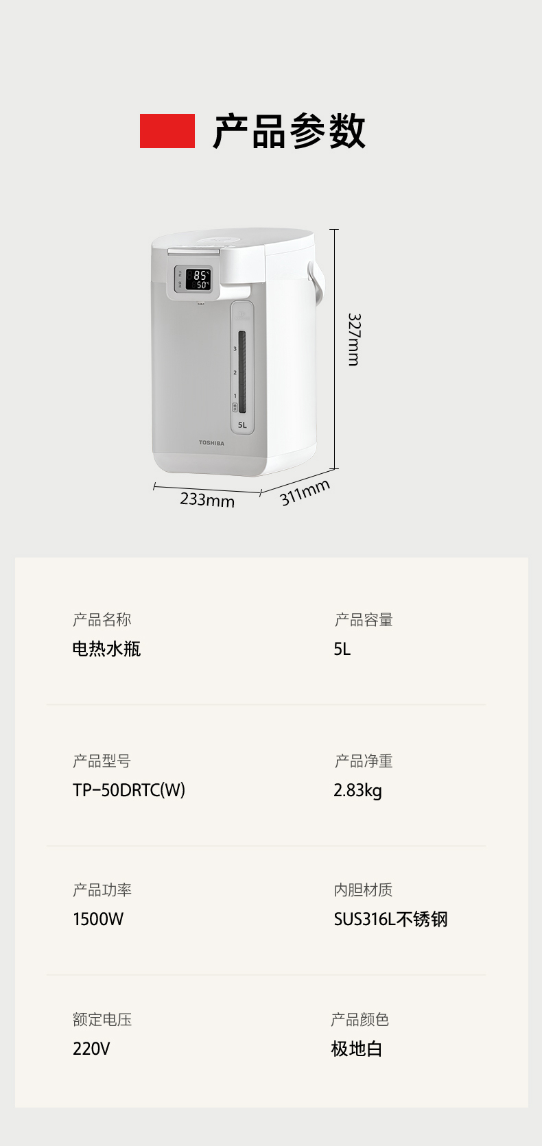 TO SHIBA(东芝) 电热水瓶 TP-50DRTC(W)极地白